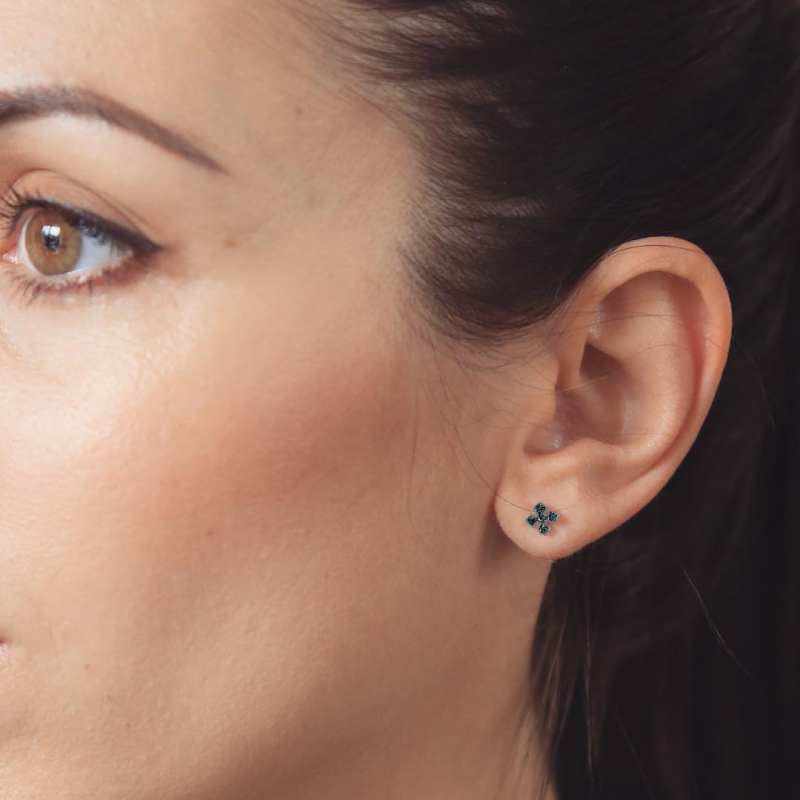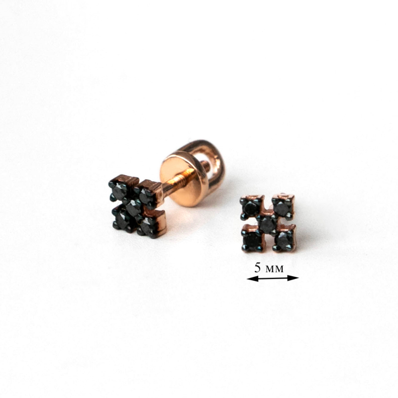 Маленькие и очень стильные серьги в готическом стиле с черными бриллиантами. Размер сережек 5 мм.