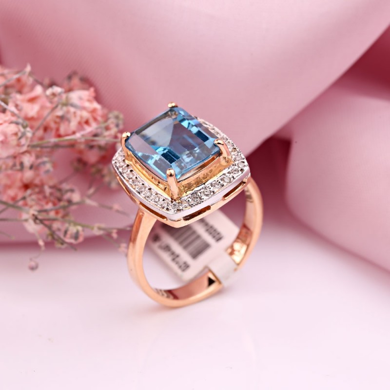Eleganter Ring aus 585er Rot/Weißgold mit Diamanten und großen Topas. Wunderschönes Geschenk für die Geliebte!