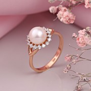 Rotgold 585, verziert mit charmanten und funkelnden Zirkonia und schönen Zuchtperle. Betont Weiblichkeit, Eleganz und guten Geschmack. Ein charmantes Geschenk für Ihre Liebsten!
