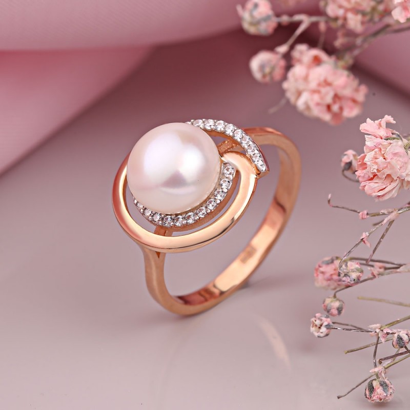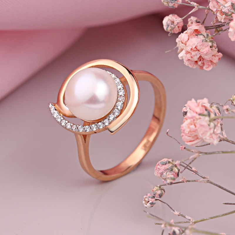 Rotgold 585, verziert mit charmanten und funkelnden Zirkonia und schönen Zuchtperle. Betont Weiblichkeit, Eleganz und guten Geschmack. Ein charmantes Geschenk für Ihre Liebsten!
