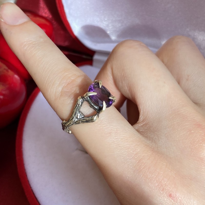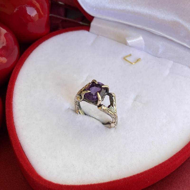 Ein bezaubernder Ring aus geschwärztem 925er Silber, verziert mit wunderschönen Amethyst. Eine hervorragende Ergänzung zu Ihrem Bild von Weiblichkeit und Romantik.