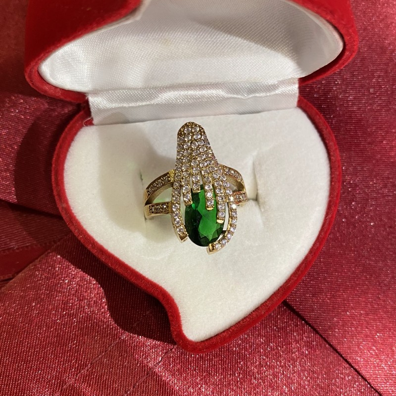 Ein bezaubernder Ring aus 925er Silber mit massiver Rotgoldbeschichtung, verziert mit wunderschönen großen grünen Turmalin und Zirkonia. Durch gekonnt gesetzte Akzente mittels Vergoldung wirkt der Ring einzigartig schön. Eine hervorragende Ergänzung zu Ihrem Bild von Weiblichkeit und Romantik.