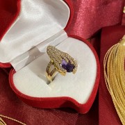 Ein bezaubernder Ring aus 925er Silber mit massiver Rotgoldbeschichtung, verziert mit wunderschönen großen Amethyst und Zirkonia. Durch gekonnt gesetzte Akzente mittels Vergoldung wirkt der Ring einzigartig schön. Eine hervorragende Ergänzung zu Ihrem Bild von Weiblichkeit und Romantik.