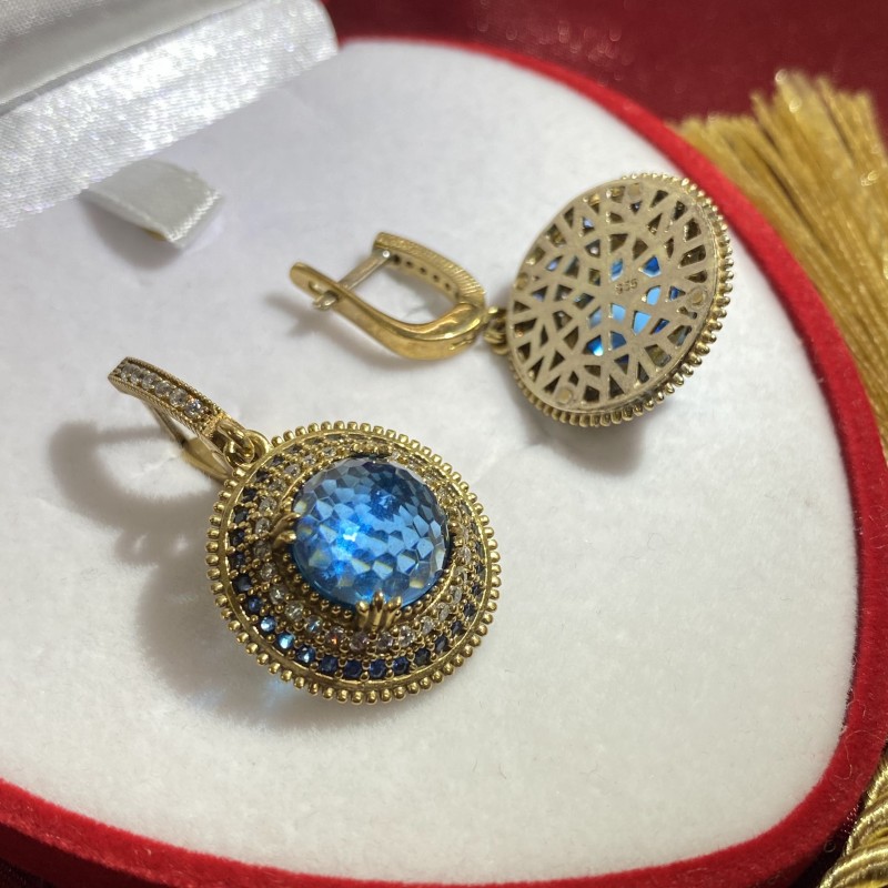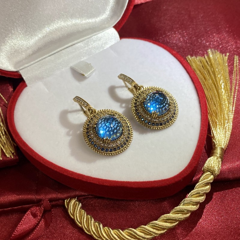 Wunderschöne Ohrhänger aus 925er Sterlingsilber, verziert mit bezauberndem Topas und funkelnden Zirkonia! Der aristokratische Glanz des blauen Steins offenbart die ganze Erhabenheit des himmlischen Farbtons. Bewundern Sie es und Sie werden bemerken, wie auf Schritt und Tritt neue Horizonte sichtbar werden. Diese erstaunliche Kombination aus Eleganz, Leichtigkeit und Individualität verleiht der Dekoration besonderen Charme und Inspiration. So können Sie stets bewundernde Blicke sammeln.