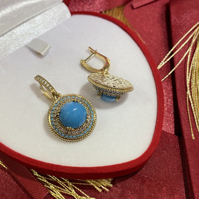 Wunderschöne Ohrhänger aus 925er Sterlingsilber, verziert mit bezauberndem Türkis und funkelnden Zirkonia! Der aristokratische Glanz des blauen Steins offenbart die ganze Erhabenheit des himmlischen Farbtons. Bewundern Sie es und Sie werden bemerken, wie auf Schritt und Tritt neue Horizonte sichtbar werden. Diese erstaunliche Kombination aus Eleganz, Leichtigkeit und Individualität verleiht der Dekoration besonderen Charme und Inspiration. So können Sie stets bewundernde Blicke sammeln.