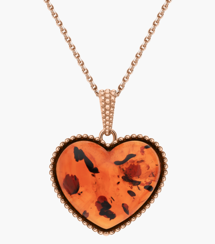 Ein charmanter Anhänger aus rotvergoldetem 925er Silber und einzigartigem Bernstein, mit diesem erstaunlichen "Stück der Sonne" in Cognactönen. Eine einzigartige Gelegenheit, Ihre Individualität zu betonen, das Bild von Weiblichkeit, Sonnenschein und Zärtlichkeit zu vermitteln.