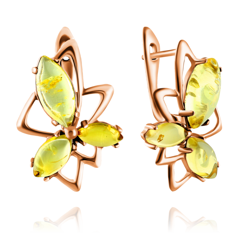 Vergoldete Silberohrringe "Schönheit". Bernstein