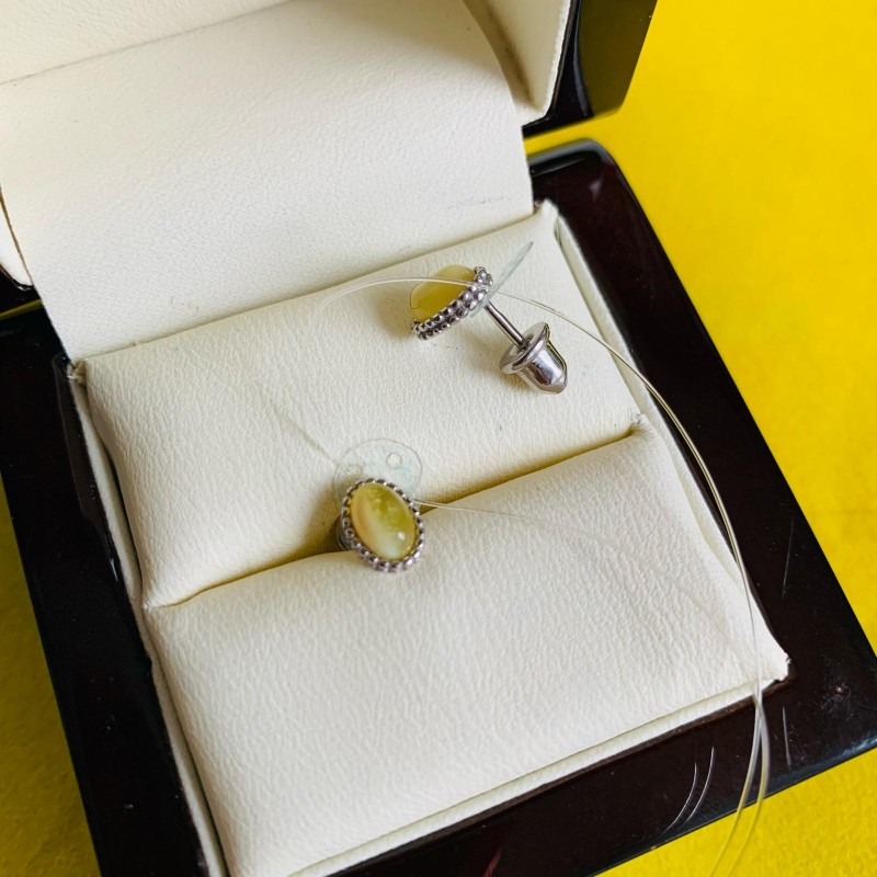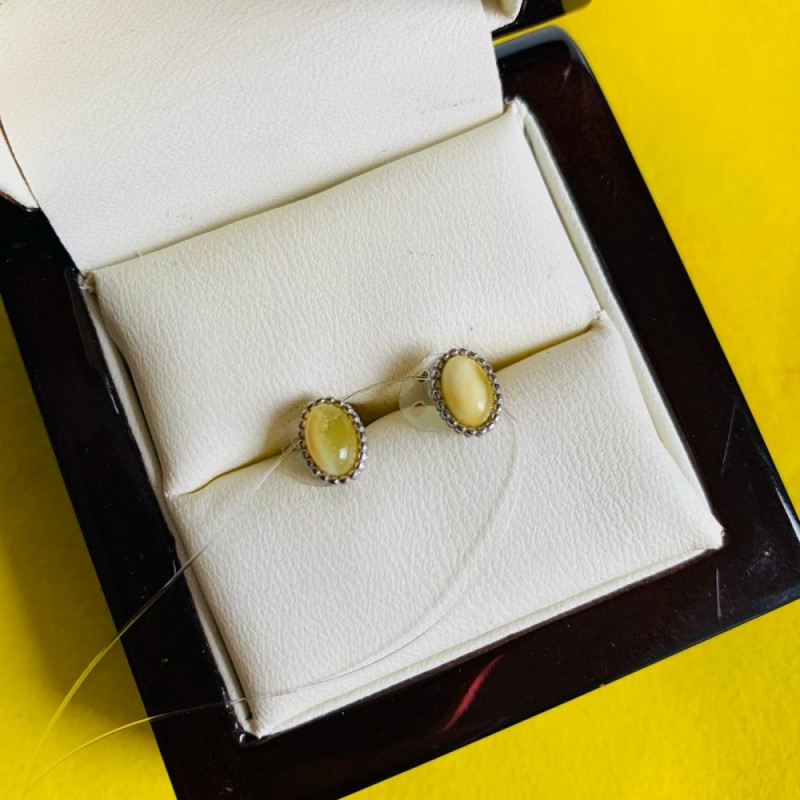 Wunderschöne Ohrstecker aus rhodiniertem Silber 925 Probe mit königlichem Bernstein! Das Hauptmerkmal von weißem oder königlichem Bernstein ist seine außergewöhnliche Schönheit und sein Wert, da er seltener als andere in der Natur vorkommt. Eine matte Basis mit Einschlüssen unterschiedlicher Farbtöne sorgt für originelle Verläufe, die von Juwelieren gekonnt in Szene gesetzt werden. Eine einzigartige Gelegenheit, Ihre Individualität zu betonen, das Bild von Weiblichkeit, Sonnenschein und Zärtlichkeit zu vermitteln.