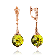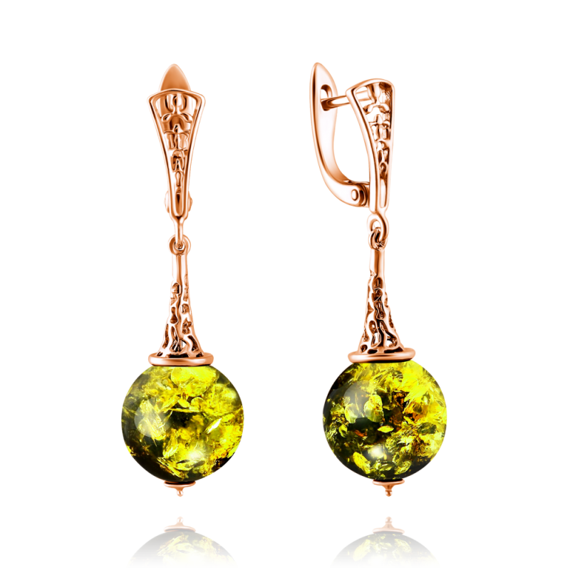 Wunderschöne Ohrhänger aus rotvergoldetem Silber 925 Probe, mit Bernstein in Grüntönen, erstaunlichen "Stück der Sonne"! Eine einzigartige Gelegenheit, Ihre Individualität zu betonen, das Bild von Weiblichkeit, Sonnenschein und Zärtlichkeit zu vermitteln.