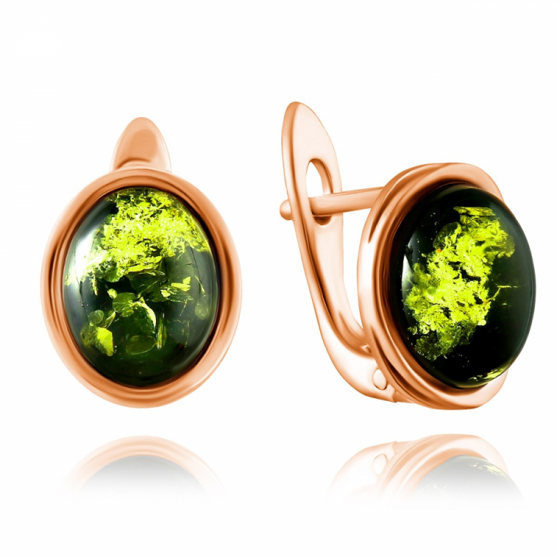 Wunderschöne Ohrringe aus Silber 925 Probe, mit grünem Bernstein, erstaunlichen "Stück der Sonne" und Rotvergoldung! Eine einzigartige Gelegenheit, Ihre Individualität zu betonen, das Bild von Weiblichkeit, Sonnenschein und Zärtlichkeit zu vermitteln.