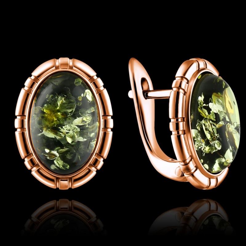 Wunderschöne Ohrringe aus Silber 925 Probe, mit grünem Bernstein, erstaunlichen "Stück der Sonne" und Rotvergoldung! Eine einzigartige Gelegenheit, Ihre Individualität zu betonen, das Bild von Weiblichkeit, Sonnenschein und Zärtlichkeit zu vermitteln.