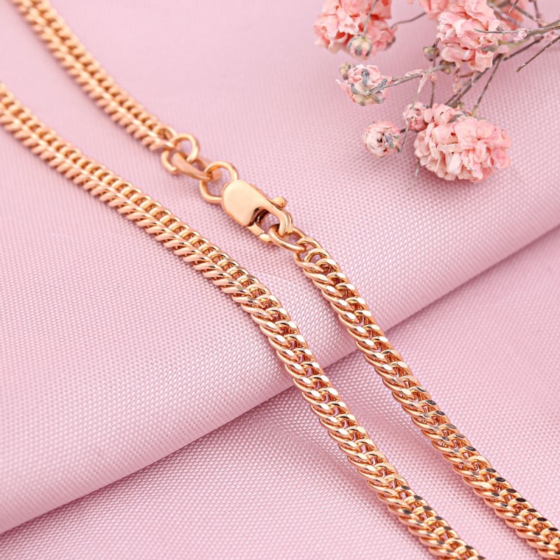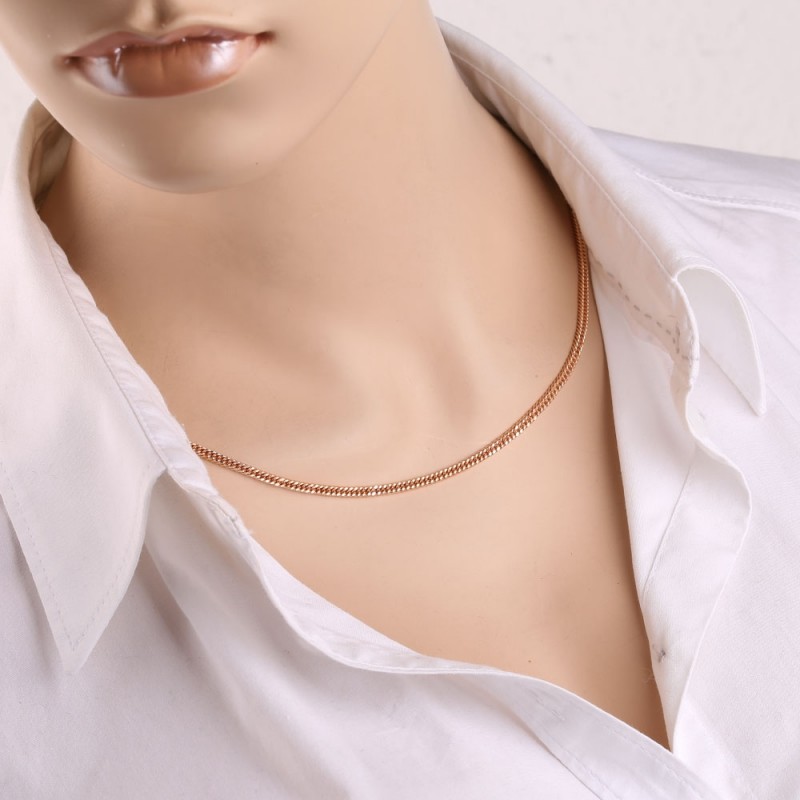 Rotgold mit Diamantschliff. Goldketten schaffen den nötigen Akzent im Bild und lenken die Aufmerksamkeit auf den Reichtum und Luxus von Accessoires, denn Gold ist schön, stilvoll, schick und teuer.