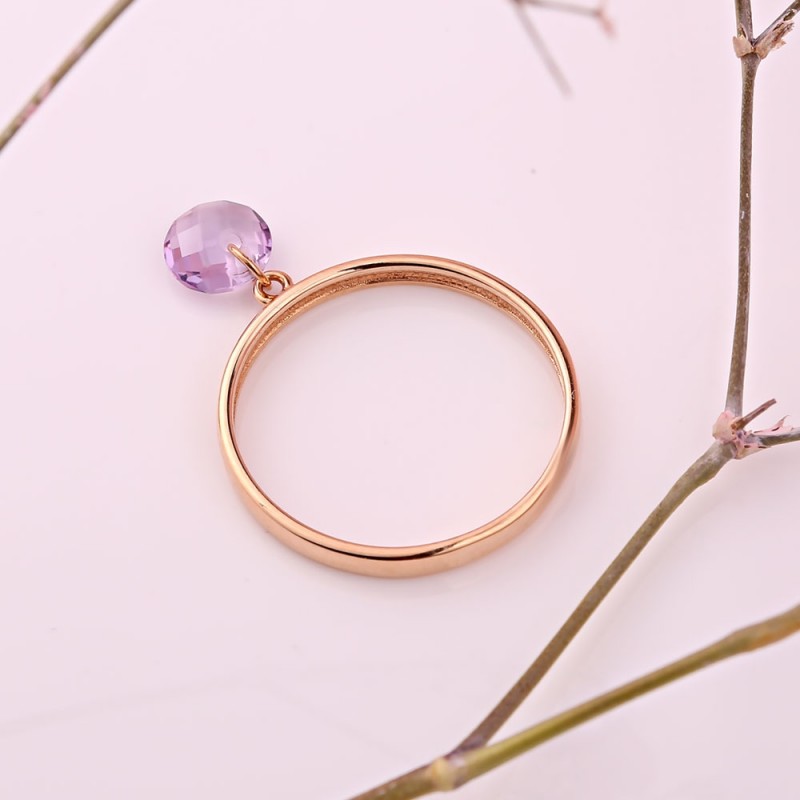 Rotgold mit einem Einsatz aus einem bezaubernden tanzenden Amethyst. Ein wunderbares Geschenk für einen geliebten Menschen!