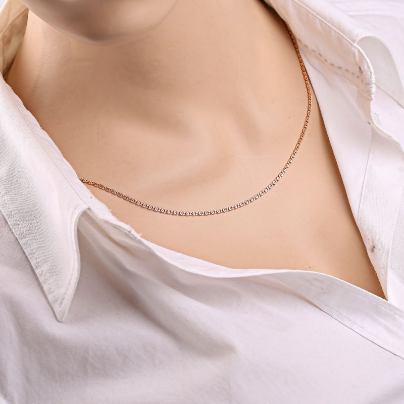 Rotgold mit Diamantschliff. Goldketten schaffen den nötigen Akzent im Bild und lenken die Aufmerksamkeit auf den Reichtum und Luxus von Accessoires, denn Gold ist schön, stilvoll, schick und teuer.