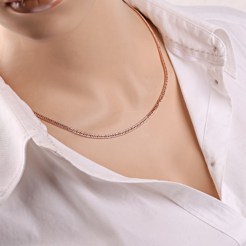 Rotgold mit Diamantschliff. Goldketten schaffen den nötigen Akzent im Bild und lenken die Aufmerksamkeit auf den Reichtum und Luxus von Accessoires, denn Gold ist schön, stilvoll, schick und teuer.