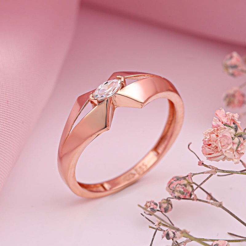 Rotgold 585 mit Zirkonia. Bezaubernder und zarter Ring, verziert mit bezaubernden und funkelnden Zirkonia. Betont Weiblichkeit, Anmut und guten Geschmack. Ein bezauberndes Rotgold-Geschenk für Ihre Liebsten!