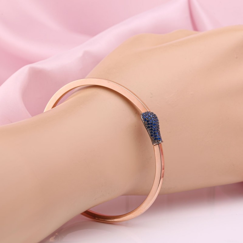 Rotgold 585 Russisches Gold in Deutschland Armband mit Zirkonia. Elegantes Creolenarmband aus Rotgold mit geschwärzten Akzenten und funkelnden bunten Zirkonia-Einsatz. Dekorieren Sie anmutige Frauenhände perfekt!