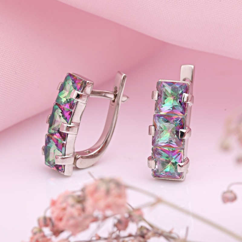 Фианит хамелеон. Шикарные серьги выполнены из серебра 925 пробы, украшены очаровательными