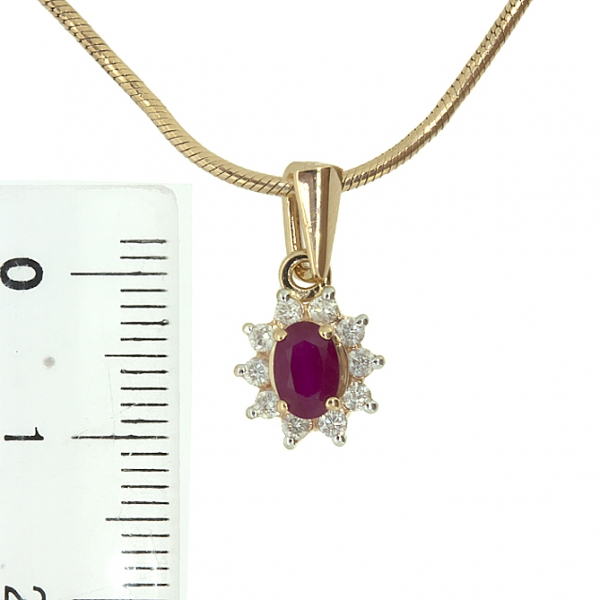 Anhänger aus Rotgold mit Rubin und Diamanten.