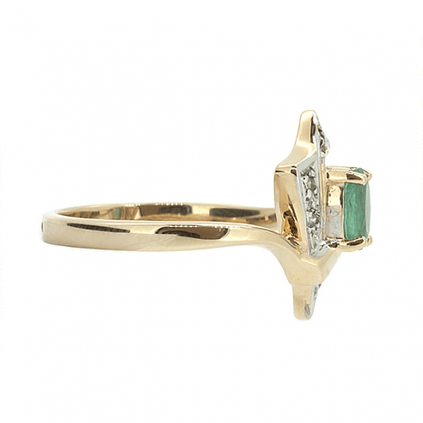 Eleganter Rotgoldring mit Smaragd und Diamanten