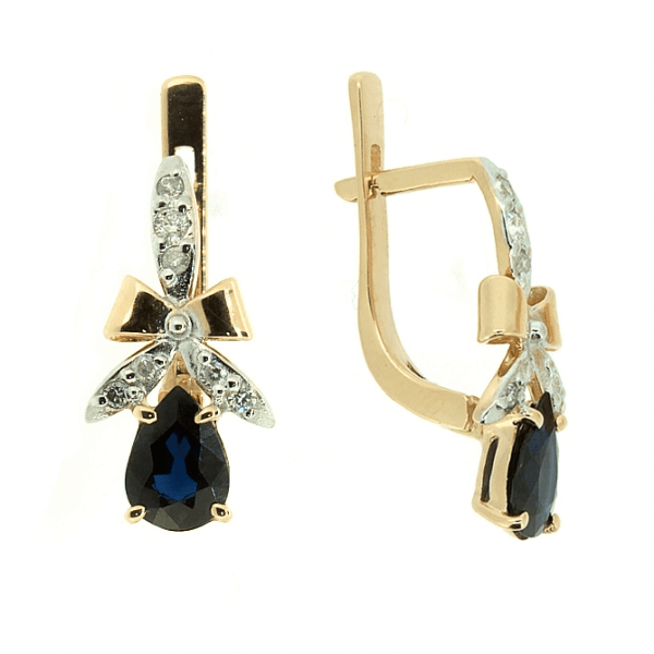 Ohrringe aus Rotgold mit Saphiren und Diamanten.