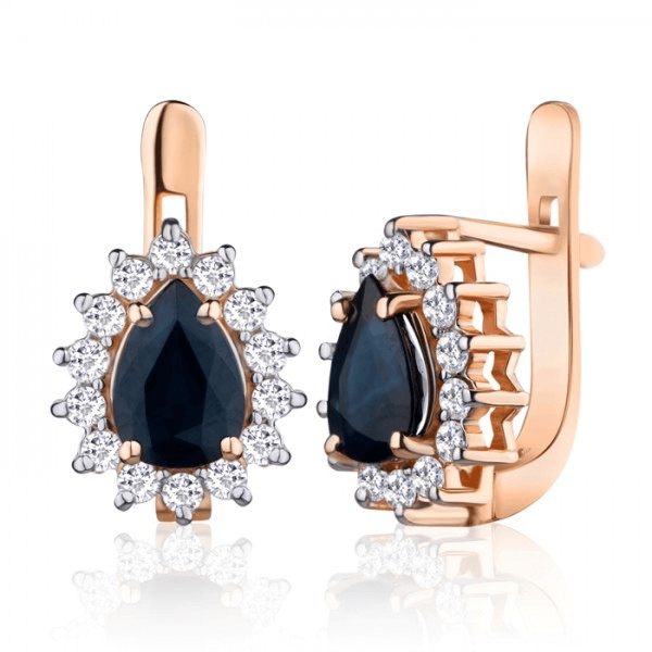 Ohrringe aus Rotgold mit Saphiren und Diamanten.