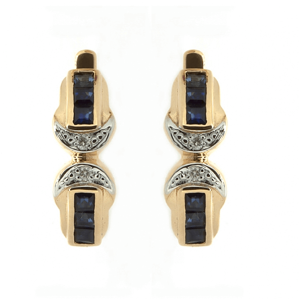 Ohrringe aus Rotgold mit Saphiren und Diamanten.