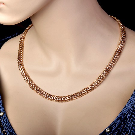 Massive Goldkette, handgefertigt, österreichische Panzerkette (amerikanisch) mit zuverlässigem Schiebeverschluss mit zusätzlichem Sicherheitsverschluss, gefertigt aus 585 Karat russischem Rotgold.
