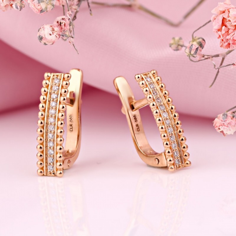 Rotgold 585 mit Diamanten. Elegante Goldohrringe aus 585er
