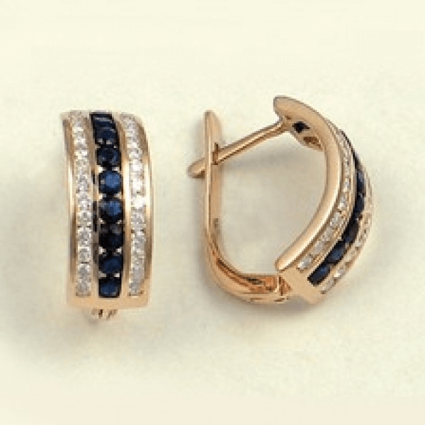 Ohrringe aus Rotgold mit Saphiren und Brillanten.