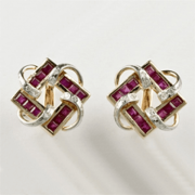 Ohrringe aus Rotgold mit Rubinen und Brillanten.