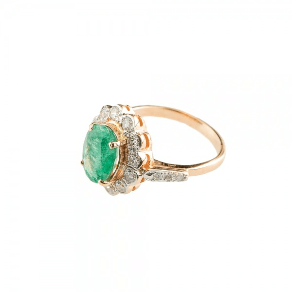 Ring aus Rotgold mit Smaragd und Diamanten.