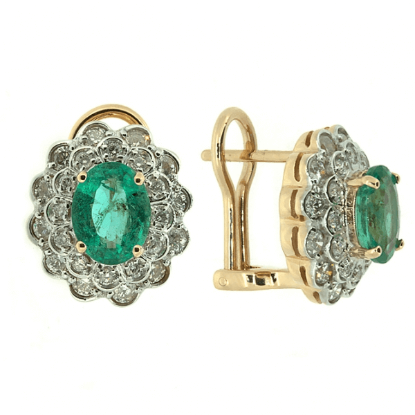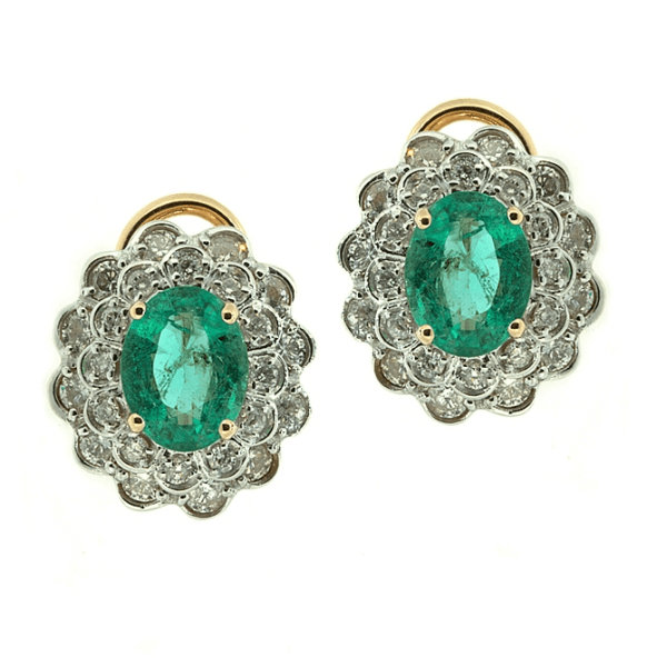 Ohrringe aus Rotgold mit Smaragden und Diamanten.