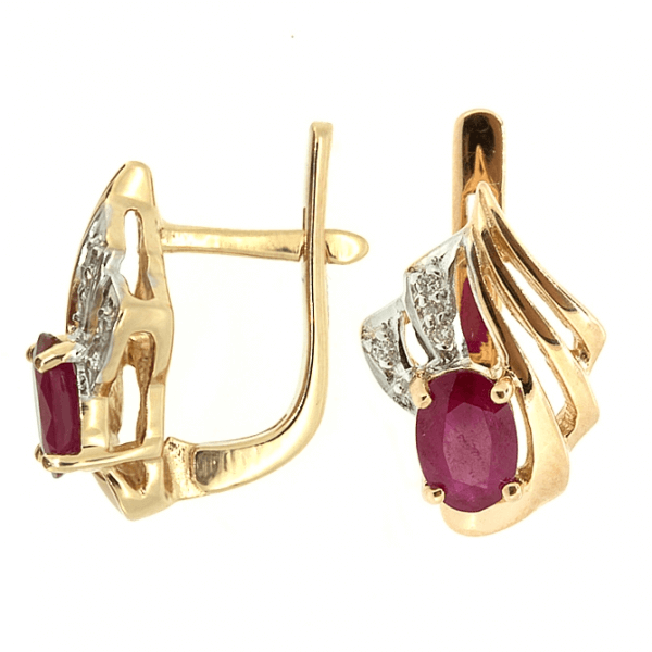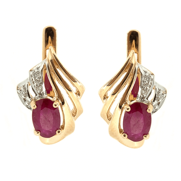 Ohrringe aus Rotgold mit Rubinen und Diamanten.