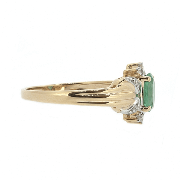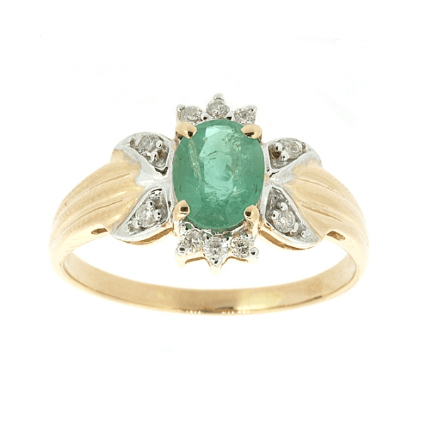Ring aus Rotgold mit Smaragd und Diamanten.