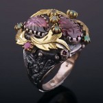 Кольцо из белого золота с сапфирами и бриллиантами.