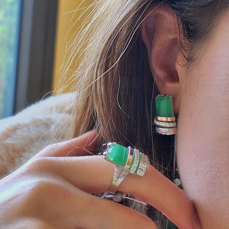 Einsatz: Zirkonia Ø 1,75 mm; Jadeit 19,0 x 10,0 mm