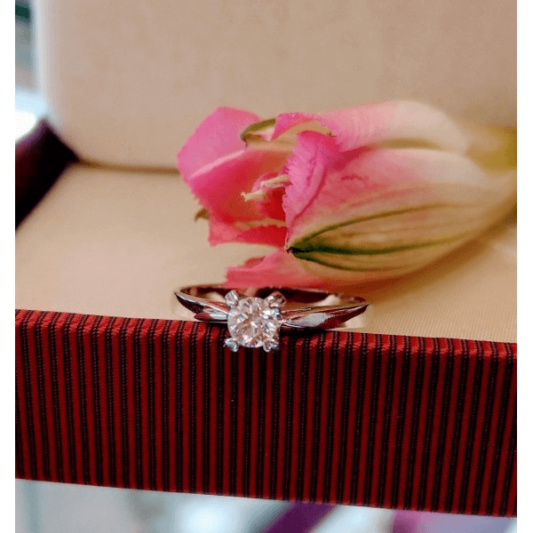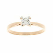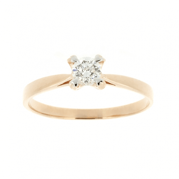Ring aus Rotgold mit einem Diamanten, mit Krappen in Herzform.
