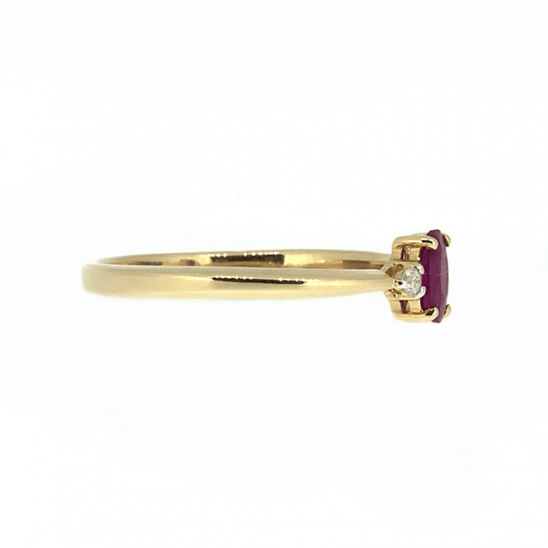 Ring aus Rotgold mit einem Rubin und Diamanten.