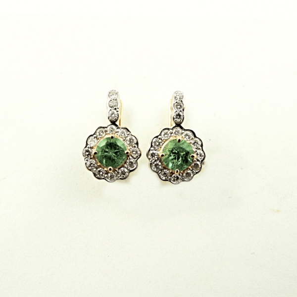 Goldene Ohrringe mit Smaragden und Diamanten