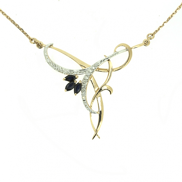 Kette aus Rotgold mit Saphiren und Diamanten.