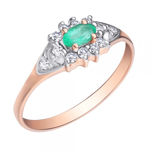 Ring aus Rotgold mit Smaragd und Diamanten.