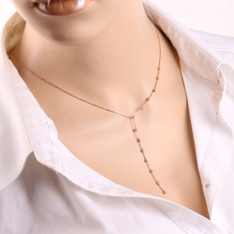 Rotgold, verziert mit goldenen diamantgeschliffenen Zierperlen. Kette - Ankergeflecht mit Diamantschliff. Wenn Sie bei Ihrer Begleiterin ihre Weiblichkeit, Anmut, ihr Lächeln und ihre Schönheit betonen möchten, dann ist ein solches Geschenk genau das Richtige für Sie.