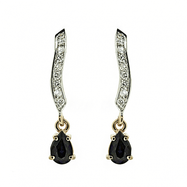 Ohrringe aus Rotgold mit Saphiren und Diamanten.
