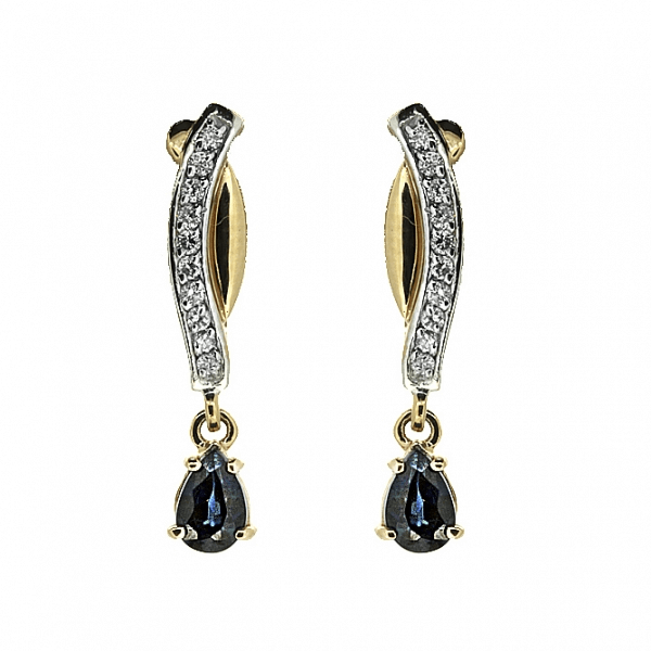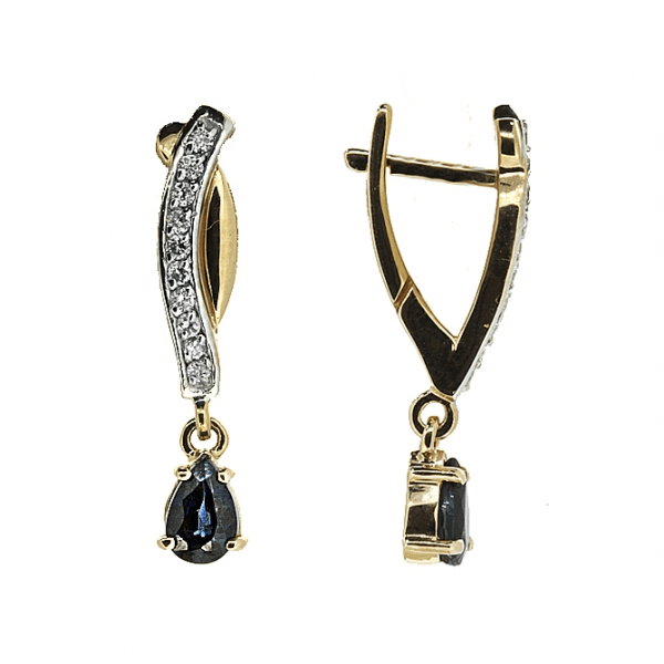 Goldene Ohrringe mit Saphiren und Diamanten