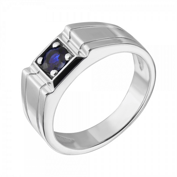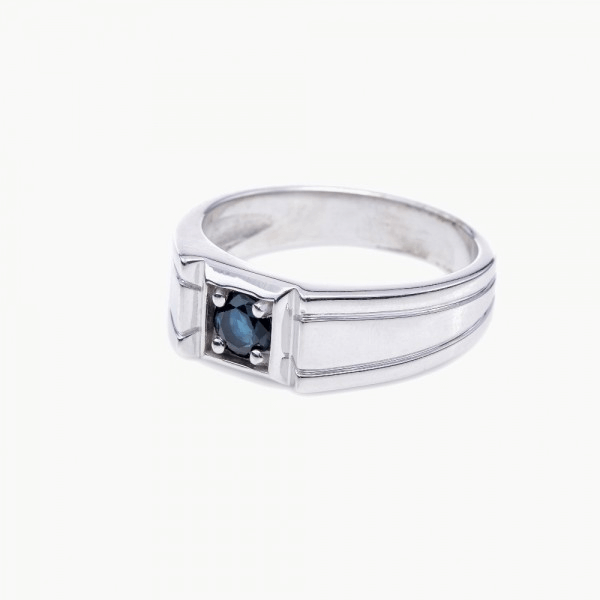 Herrenring aus Weißgold mit Saphir.