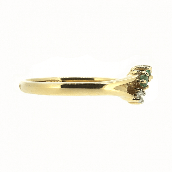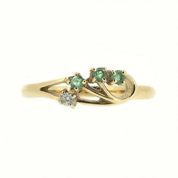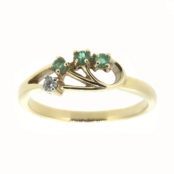 Ring aus Rotgold mit Smaragden und einem Diamanten.
