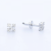 Miniatur-Ohrstecker aus Weißgold mit Diamanten, angeordnet in Form eines Schachbretts.