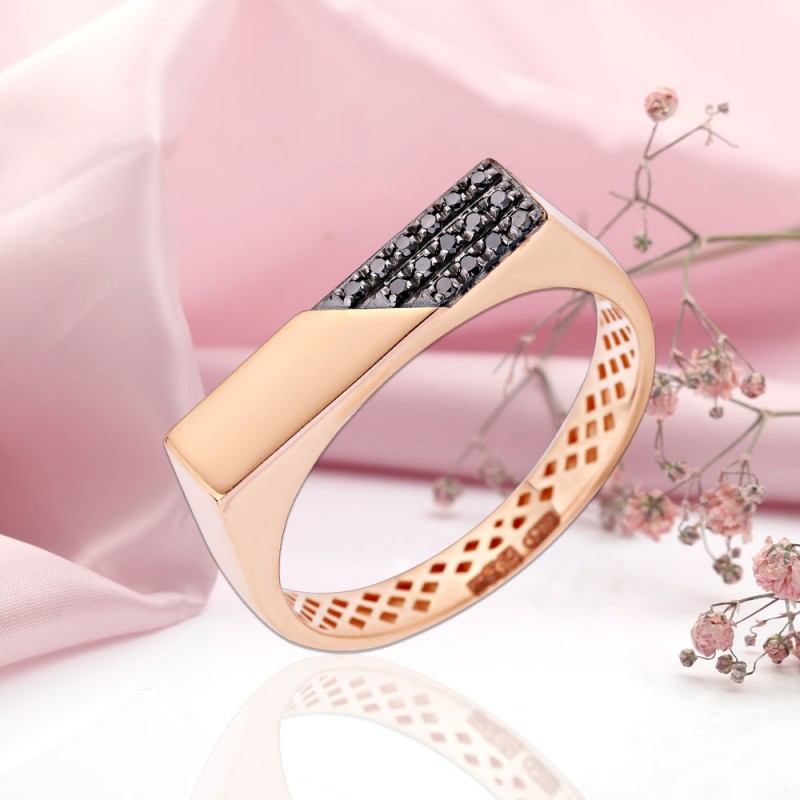 Kaufen Sie Goldring 585 mit Diamanten. Ein eleganter Ring aus 585er Rotgold mit Einsätzen aus bezaubernden schwarzen Diamanten sowie einem geschwärzten Rahmen unterstreicht die Farbtiefe der Steine. Ringe mit schwarzen Diamanten sind unabhängig von der Größe des Steins mit Sicherheit ein wunderschönes Accessoire, das jedes Outfit ergänzt und hervorhebt, unabhängig von der Einfachheit oder Komplexität des Designs des Produkts selbst.