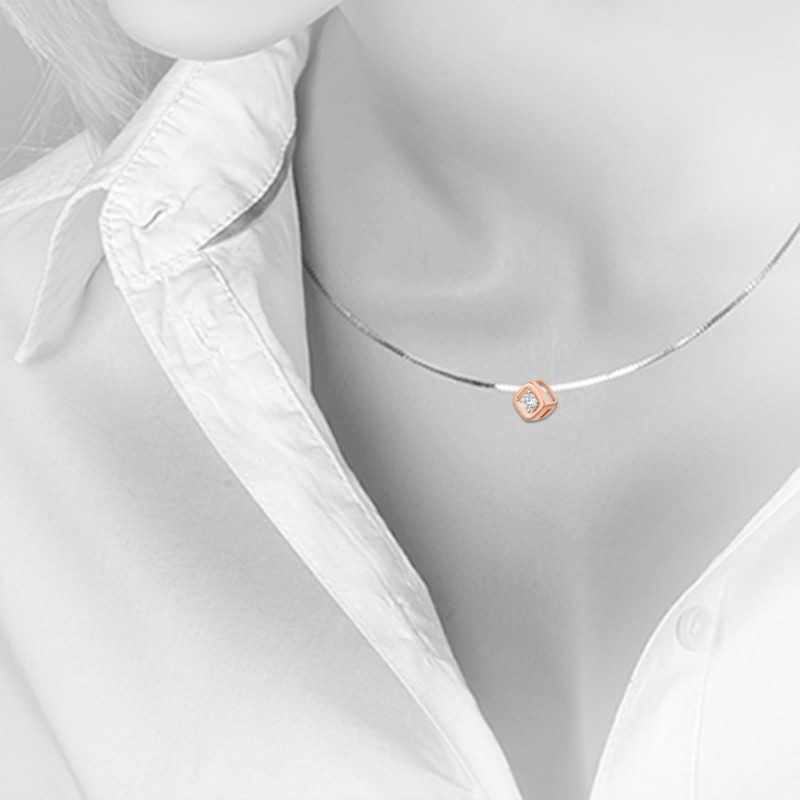 Rotgold 585 Probe mit Weißgoldakzenten, verziert mit Zirkonia. Wenn Sie bei Ihrer Begleiterin ihre Weiblichkeit, Anmut, ihr Lächeln und ihre Schönheit betonen möchten, dann ist ein solches Geschenk genau das Richtige für Sie.